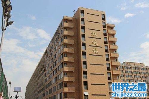 这所被称为亚洲最大的宿舍楼,位于北京市的一所大学,这所大学被称为是经济贸易大学。经济贸易大学那有一个女生宿舍被叫做虹远楼。因为这个经济贸易大学的女学生特别多,占了整个大学的2/3。因此女生居住的占地面积要比男生大得多。