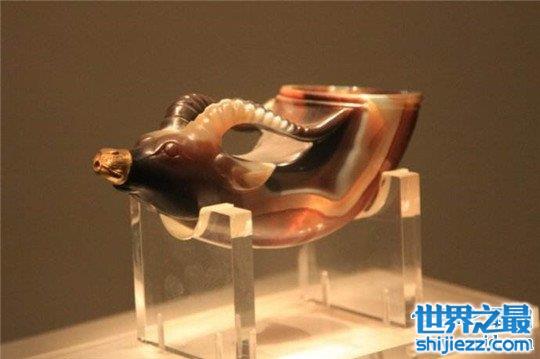唐兽首玛瑙杯,是我们国家唐代的一个文物,于1970年出土,在那个时候就被列为国宝,他之所以被看重的行为,他应该算是唐代已见最为精致的玉器,有着较为精致的花纹和颜色,尤其是它的造型,有着牛头上面带的两个棱角非常生动,是中国最珍贵的文物之一。