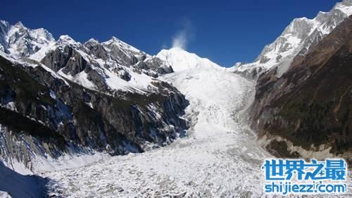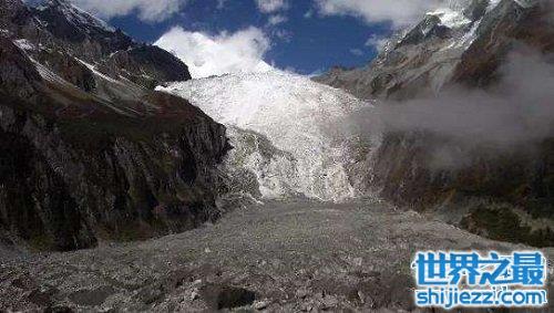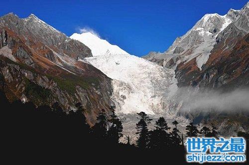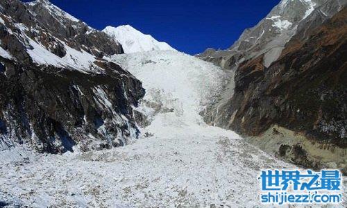 位于四川省泸定县磨西镇的海螺沟是青藏高原东缘的极高山地的海螺沟大冰瀑布是中国最大的冰瀑布,大冰瀑布高1080米左右,宽1100米左右,这绝对是比家户喻晓的黄果树大瀑布还要大得多呢,据数据统计这奖金有10个黄果树瀑布大小呢,所以它稳坐中国最高、最大的冰瀑布。