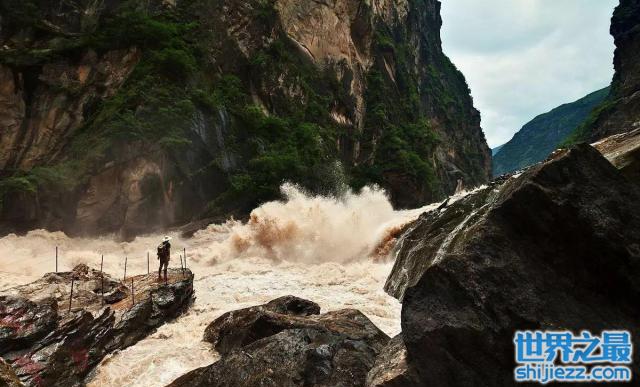 金沙江虎跳峡位于云南丽江玉龙雪山与迪庆哈巴雪山之间,垂直高差达3790米,从上往下看云雾缭绕,水流湍急令人生畏。在江心还直直地矗立着海拔13米的虎跳石,在周边水流的冲击中就像一座孤峰,不畏外部环境的浸染,惹人敬佩。