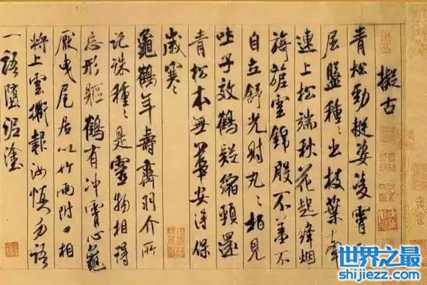 《草书诗帖》是明代书法家祝允明的草书作品,其主要内容是曹植《乐府》四首,后被誉为明代奇才草书绝品,也是中华十大传世名帖之一。