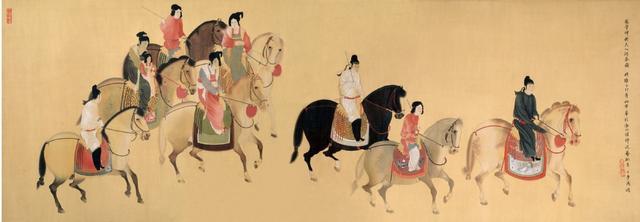 《唐宫仕女图》是唐代为贵族女子所做的画作。唐代是封建社会最为辉煌的时代,也是仕女画的繁荣兴盛阶段,画师们一般取材于现实生活中贵族妇女的行乐活动,迎合了中晚唐时期大官僚贵族们的审美意趣。