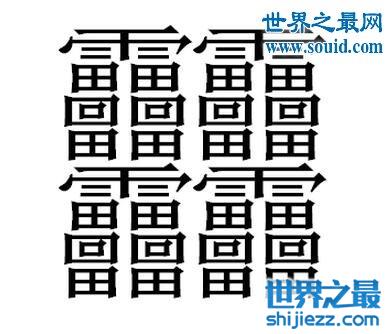 读音hou·you,也是“ 雷”的古字,由16 个田字和8个回字组成,共128划,网络字笔划排名第二。
