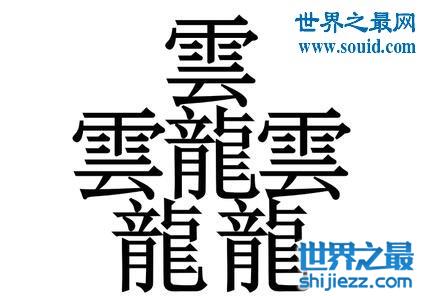 读音taito,由3个大写的中国字“龍” 和3个大写的中国字“雲”组成,共84画。1、中国古字,表示龙在飞翔。2、日本汉字,收录于日本的TRON计划,是迄今为止TRON计划笔划最多的汉字。