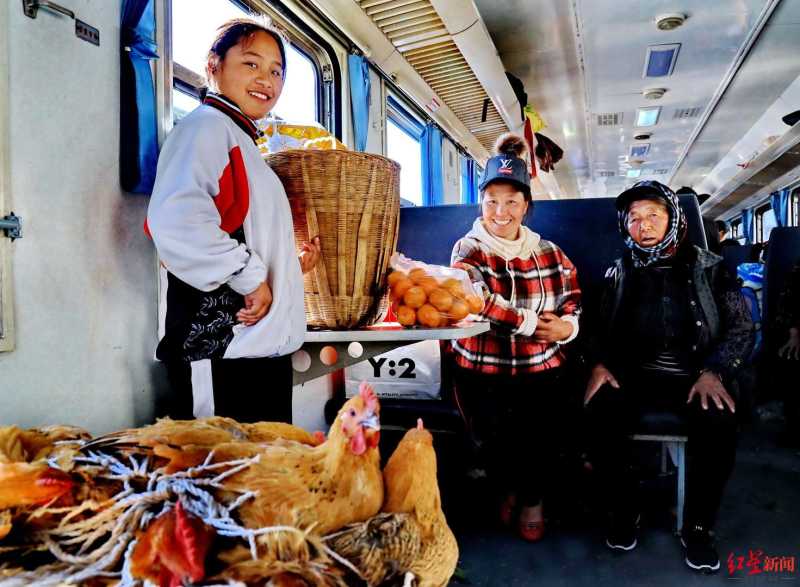 这趟慢火车,胡仲平拍摄了20多次。有一副照片,给胡仲平留下了深刻印象。一位母亲背着鸡、鸭、鹅,乘坐慢火车去赶集,她不忘给孩子辅导作业……胡仲平拍下这一瞬间,“小慢车为凉山地区脱贫攻坚战及奔小康进程中发挥了重要作用和贡献,开行50多年来深受沿线彝族老乡欢迎。”