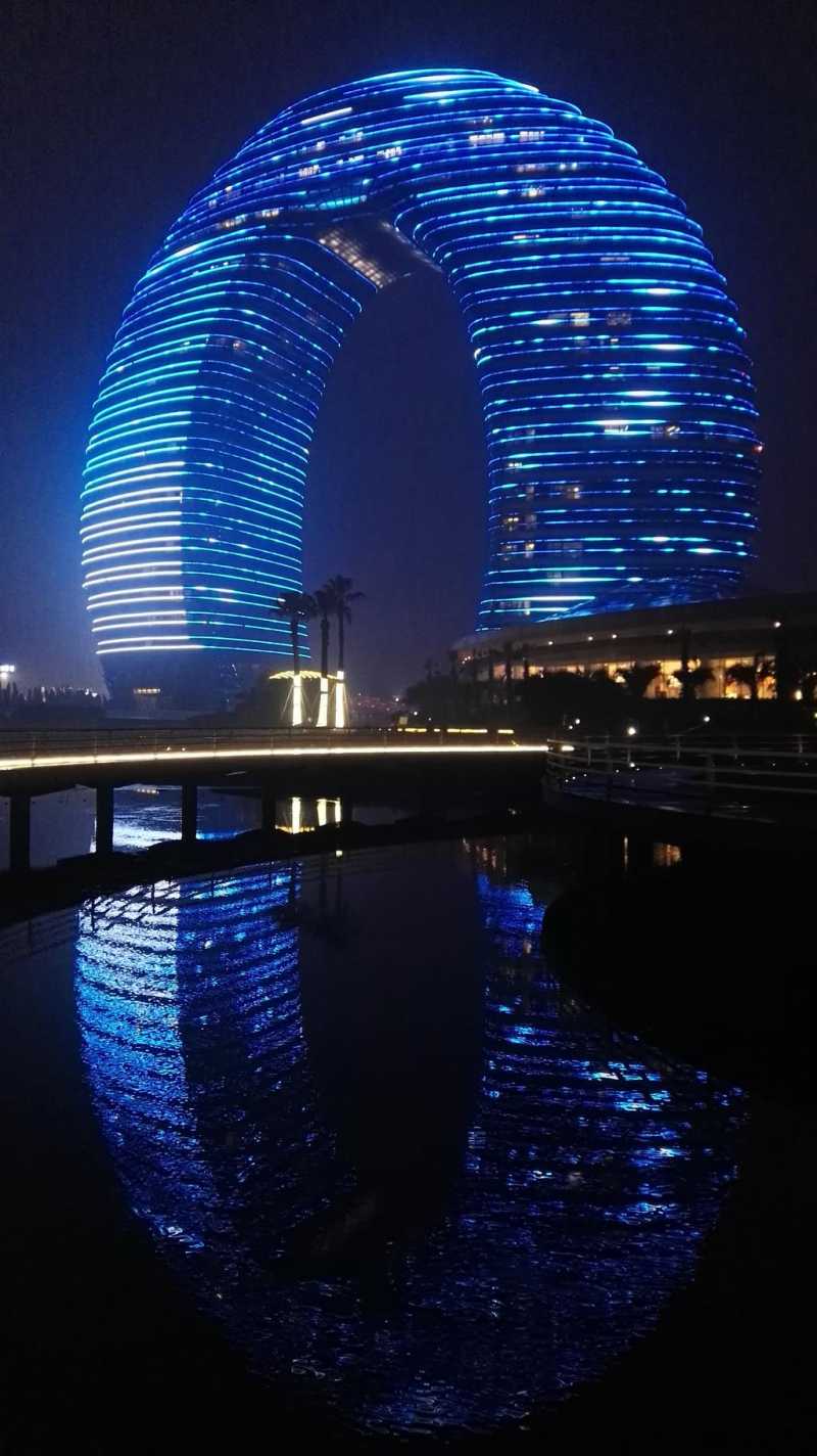 绰号“马蹄铁旅馆”的湖州喜来登温泉度假酒店,由北京建筑师马岩松设计。 这家颇受欢迎的酒店位于太湖畔,形状像一个甜甜圈。它高100米,宽116米。到了晚上,在LED灯的照射下,酒店形状和灯光会反射在湖水中,显得格外引人注目。这个酒店拥有321间客房以及昂贵的别墅区,此外,这些房间都是“湖景房”,太湖之景尽收眼底。