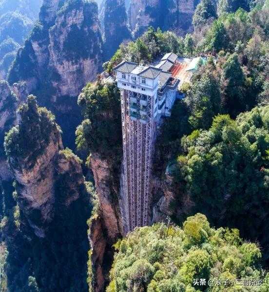 张家界武陵源风景区内有一栋世界上最高的户外观光电梯百龙天梯,被誉为“世界第一梯”,同时作为中国唯一电梯上榜“世界11大创意电梯”。#中国产业名片#