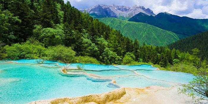黄龙风景名胜区享有“世界奇观”的美誉,以其色彩缤纷的游泳池、白雪皑皑的山脉、高山草甸、宁静的山谷、神秘的野生森林、温泉和壮观的瀑布而闻名。最热门的景观集中在黄龙谷,覆盖着石灰华沉积物,使晶莹剔透的池水呈现出不同的颜色。