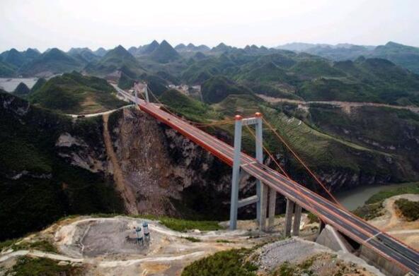 详情:这座大桥于2005年10月份正式开工建设,2008年7月完工,位于贵州省关岭县与晴隆县交界的北盘江大峡谷,跨度636米,这座大桥目前是我国已建成跨度最大的钢桁梁悬索桥。