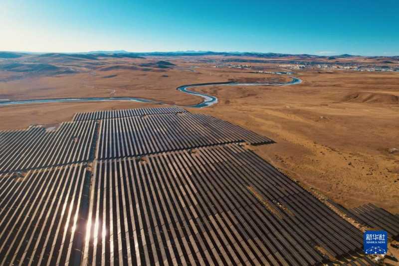 西藏华电那曲色尼区12万千瓦光伏发电电力保供项目于2022年12月底投产发电。这是目前西藏最大的光伏发电电力保供项目,预计每年可减少二氧化碳排放21.96万吨。(图片来源:新华社)