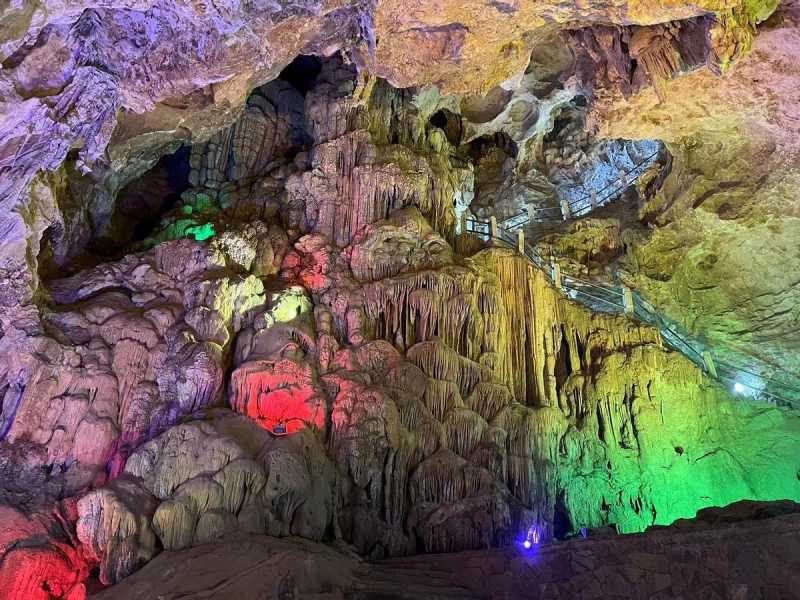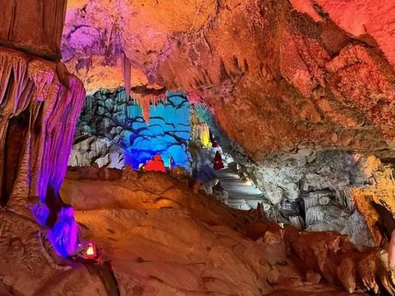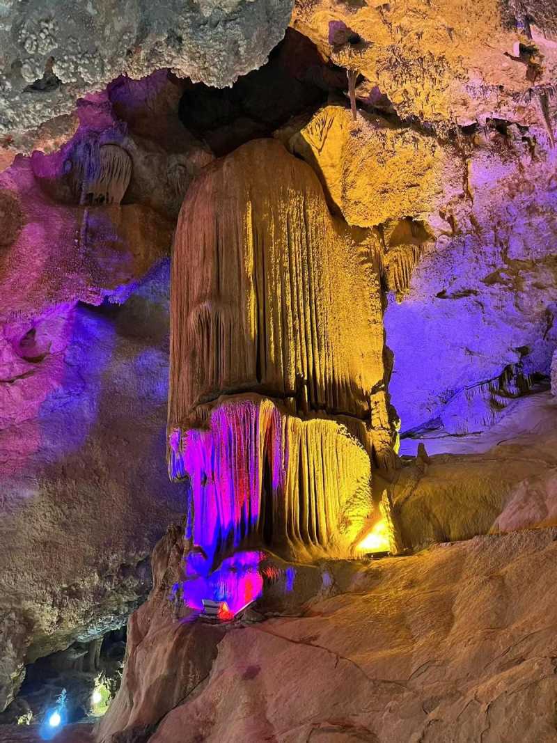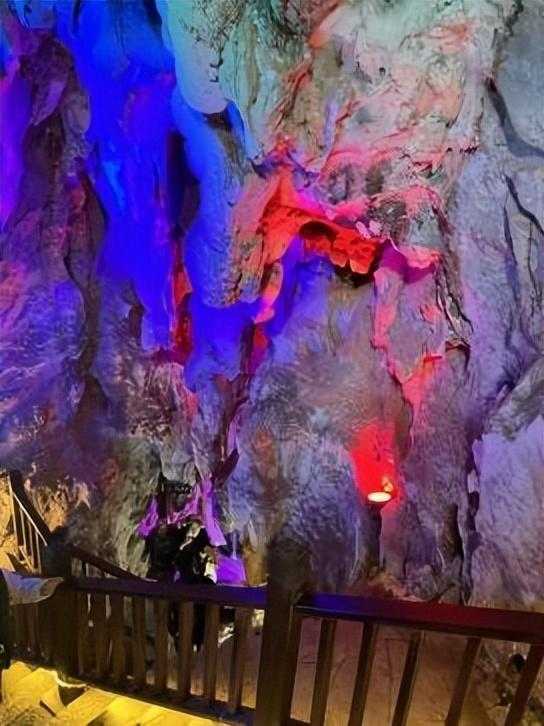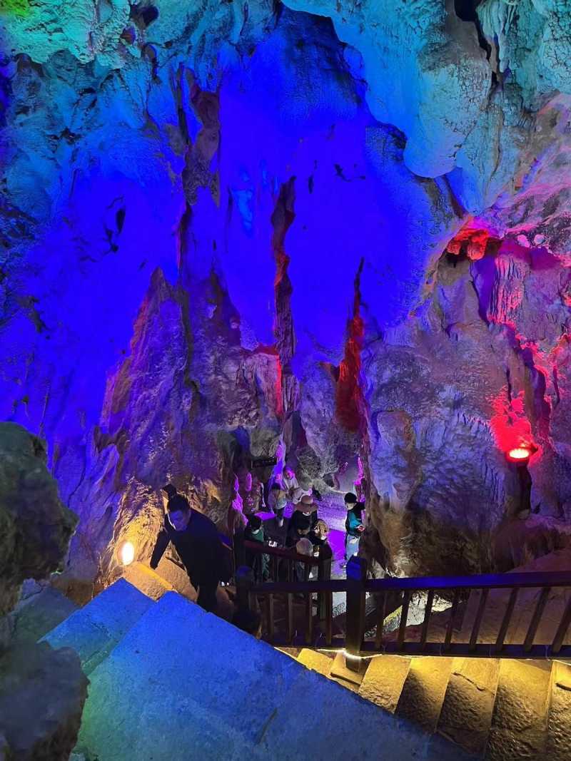 进入到洞中,这里的世界瞬间变得五彩斑斓,洞中的石头千奇百怪,在灯光的照耀下变得有些神秘。