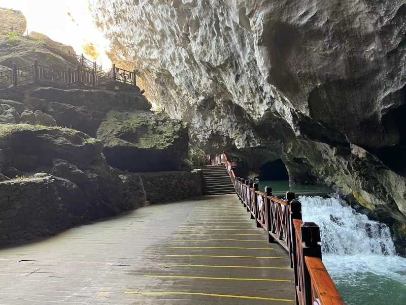 来龙宫,必打卡的第一个点是龙门飞瀑,这个瀑布是由天池水倾泻形成的,是一个典型的喀斯特暗瀑。