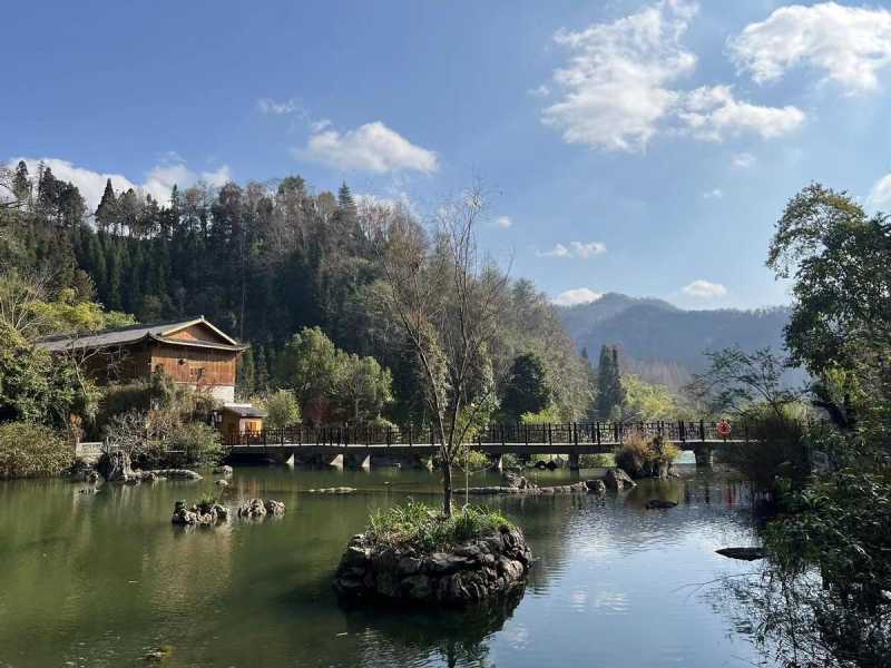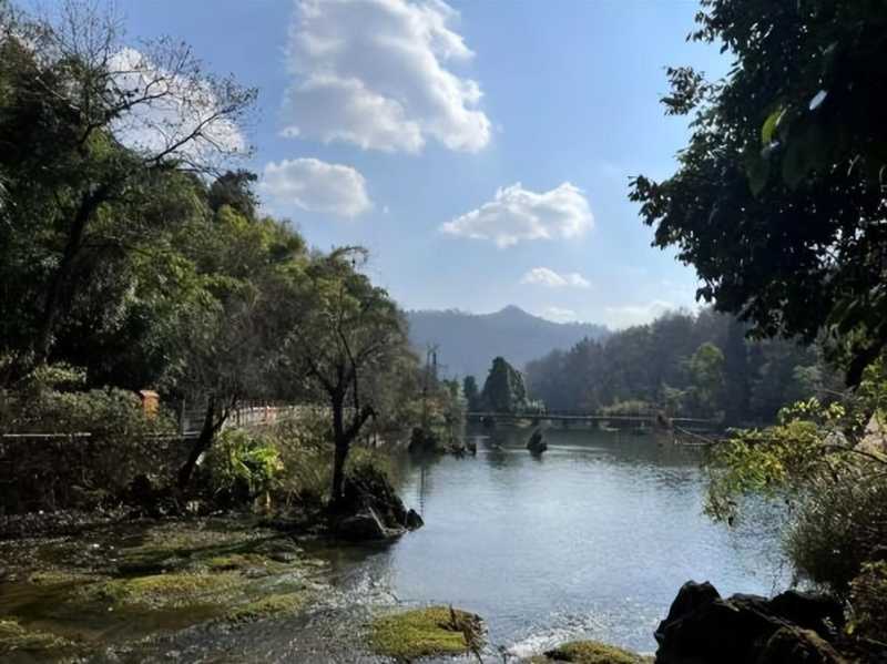 第一站是卧龙桥,这里是一个横跨于明湖之上的梁式桥,放眼望去,桥下怪石嶙峋,像极了一条巨龙潜在这水底,时而露头,时而露尾,所以得名为卧龙桥。