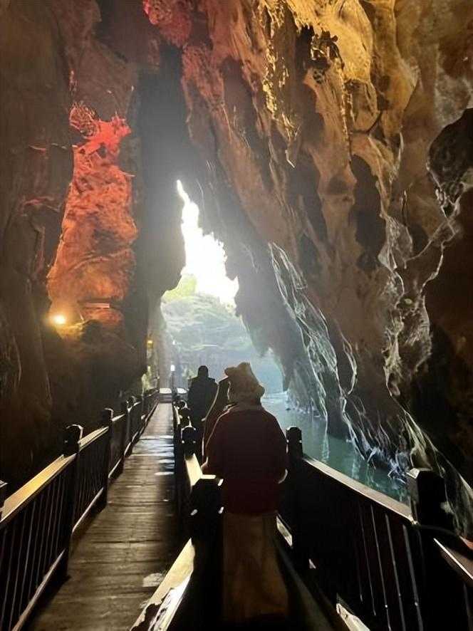 几分钟的时间,这一趟别样的溶洞穿行就结束了,我们下了游船,走上一条长长的走廊,此时,光线逐渐由绚烂的灯光变成了自然光。
