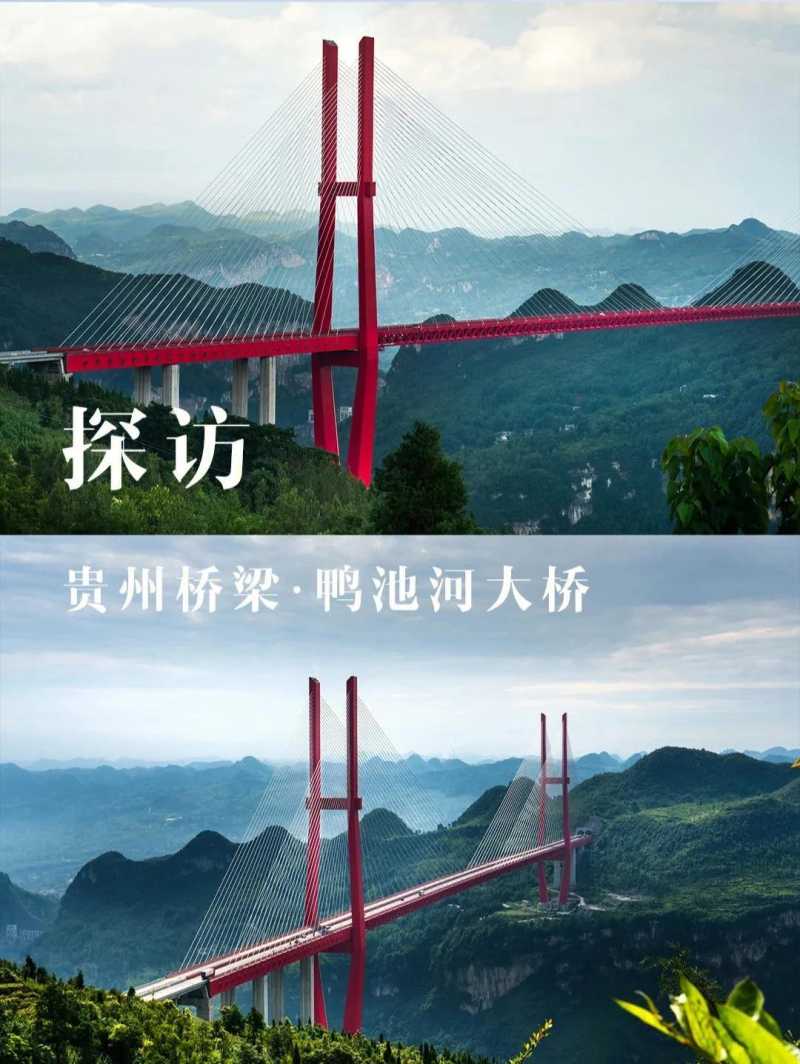 北盘江大桥,2016年12月29日正式建成通车,它横跨云贵两省,全长1341.4米,桥面到谷底垂直高度565米,成为目前世界第一高桥。同时,大桥东、西两岸的主桥墩高度分别为269米和247米,720米的主跨也仅次于后期开工建设的贵(阳)黔(西)高速公路鸭池河特大桥, 在同类型桥梁主跨的跨径中排位世界第二。