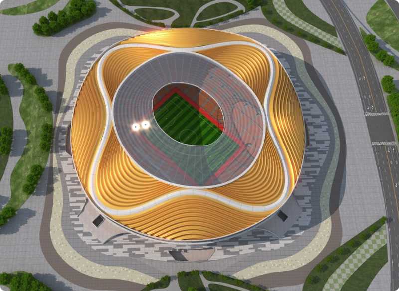 足球场采用世界杯FIFA最新标准将为专业赛事长期投入使用没有普通体育场的田径跑道整体拉近了看台与球场的距离为球迷带来更加震撼的观感体验。