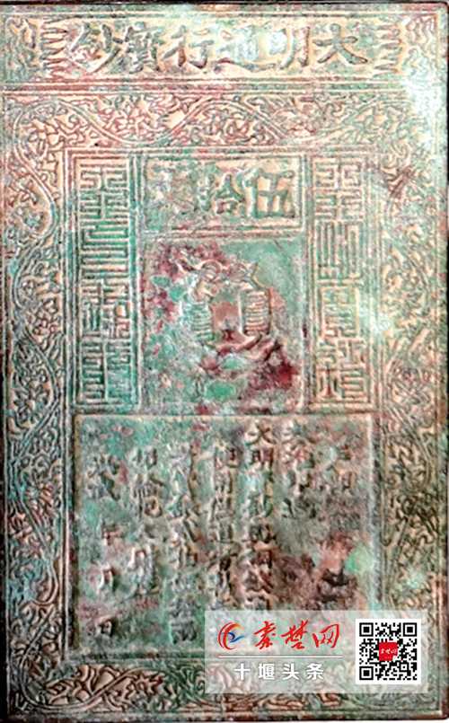 秦楚网讯(十堰晚报)文、图/记者 罗毅 代琳源 报道:熟悉历史的人都知道,中国迄今为止发行的票幅面最大的纸币当属“大明通行宝钞”,一张纸钞差不多有 A4纸那么大。在600多年前,这样巨大的钞票是如何印刷出来的呢?近日,我市收藏爱好者陈先生展示了其珍藏的一些制钞铜板,其中就有印制“大明通行宝钞”的铜板。