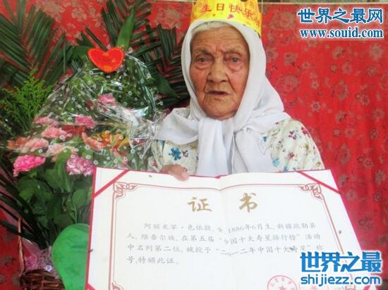 新疆130岁老人阿丽米罕·色依提,已经130岁了!根据中国老年学学会提供的信息,来自新疆的阿丽米罕·色依提出生于1886年6月25日(光绪12年)。从2010年起,荣获中国老年学学会公布的全国十大寿星排行榜第二名。但比此前的付素清真的还要高龄许多啊。