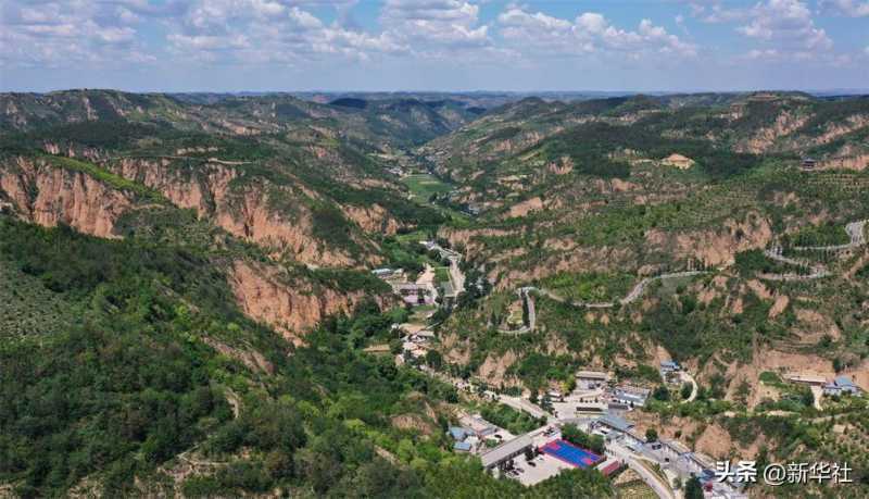 青山环抱的陕西省延安市延川县文安驿镇梁家河村(2019年8月12日摄,无人机照片)。新华社记者 陶明 摄
