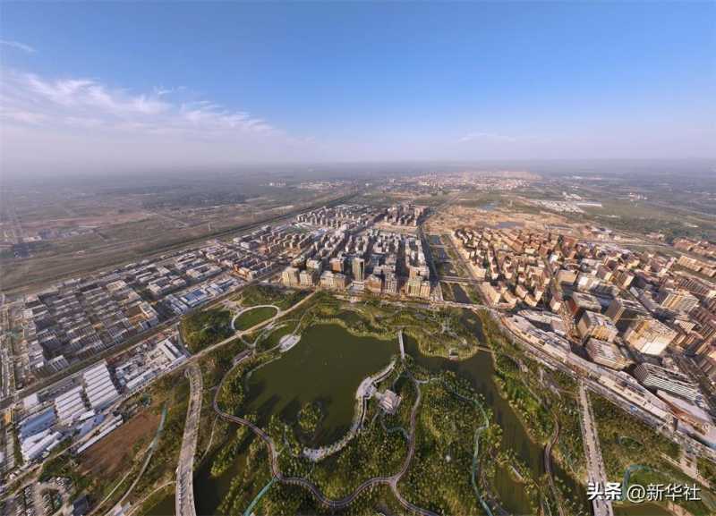这是清晨时分的雄安新区容东片区(2022年9月8日摄,无人机照片)。新华社记者 邢广利 摄