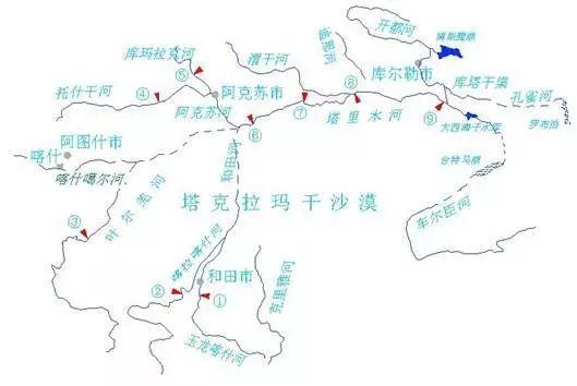 位于新疆维吾尔自治区塔里木盆地北部。发源于天山山脉及喀喇昆仑山,沿塔克拉玛干沙漠北缘,穿过阿克苏、沙雅、库车、轮台、库尔勒、尉犁等县(市)的南部,最后流入台特玛湖。中国最长的内陆河,也是世界第五大内陆河。