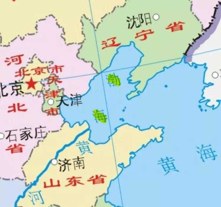 渤海是中国最北的近海,是中华人民共和国的内海,同时也属于内水范畴。东面以辽东半岛的老铁山岬经庙岛至山东半岛北端的蓬莱岬的联线与黄海分界。其它三面环陆,北,西,南三面分别与辽宁、河北、天津和山东三省一市毗邻。根据地形地貌,渤海可分辽东湾、渤海湾、莱州湾、中央浅海盆地和渤海海峡五部分。