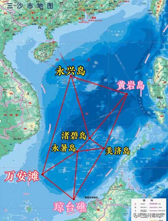 在中华人民共和国版图中,南中国海有9条断续线组成的U形线,通常称为九段线, 线内区域为中国南海。茫茫南海,没有界碑,如何确定我国的海上边界呢?我国实控边界附近的岛礁沙洲就显得尤为重要。万安滩、曾母暗沙、半月礁、黄岩岛等便是如此。