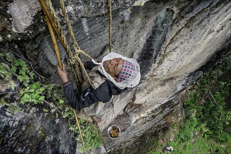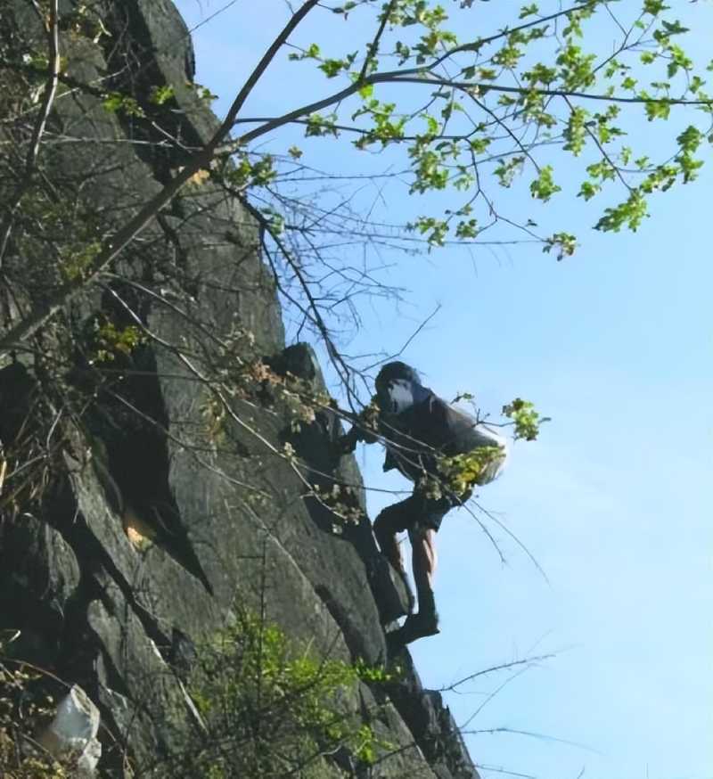 在往上攀登的过程中,脚下一块岩石脱落,他不幸跌落悬崖,求生本能让他双手扣住了石缝,大呼救命。