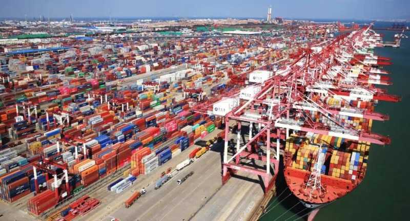 中国港口等待进出口的集装箱