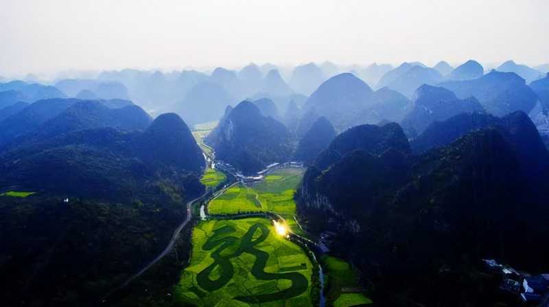 每年三月、十月,龙宫景区占地近8万平方米龙字田便会成为热门打卡点。三月金色的油菜花海,“立体多层,起伏跌宕”的漫山金黄中,拓自唐代书法大家怀素的草书“龙”字,铺洒在金灿灿的油菜花景中;十月看金黄的稻田黄澄澄的稻穗垂着沉甸甸的穗头,风吹稻浪阵阵稻香,身处其中感受秋季收获的喜悦。