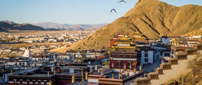 这座名寺是由藏传佛教格鲁派的创始人宗喀巴于1409年筹建的一座在黄教六大寺中占据特殊地位的一座寺庙,全称为卓甘丹南巴杰卫林,历代的格鲁派教主甘丹赤巴均居于此寺,可惜的是文化大革命中,寺庙被毁,21世纪以后才陆续重修建成。
