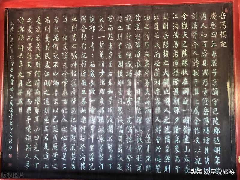 范仲淹所作《岳阳楼记》成为我国古代散文的经典之作。人们也因此北宋巴陵郡守滕子京重修岳阳楼,范仲淹著名的《岳阳楼记》,又请苏舜钦书写、邵竦篆刻了《岳阳楼记》为“天下四绝”,并为此树“四绝碑”四绝碑至今仍保存完好。