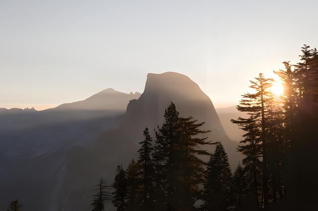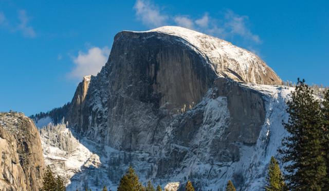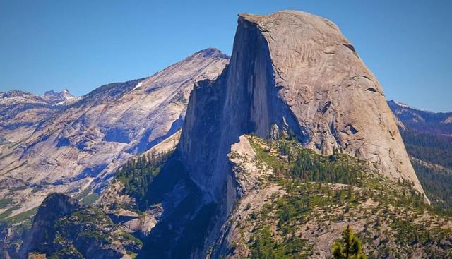 每一个角落都向人类展示着大自然的鬼斧神工,赫赫有名的“半穹顶”是其中最耀眼的景色,岩石构成的弧形穹顶被巨斧削掉了一半,西北方的山壁向下形成笔直的切面。