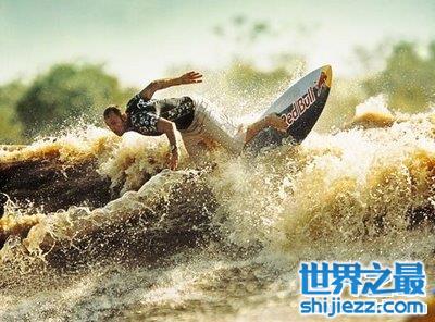 它的冲击力之大,可谓无坚不摧,包括树木,房屋和各种动物.当然它也成为冲浪爱好者们挑战极限的选择, 由于水中含有大量的杂物垃圾(常常是整棵树木) 这使在pororoca冲浪的难度和危险性都非同一般。