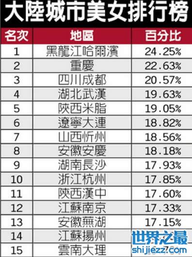 上面这份榜单系内地网友投票评选的结果,传统“豪门”重庆和成都位列第二第三,而黑龙江哈尔滨成为中国美女最多的城市,排行榜一出,立马引来很多网民的激烈热议,很多人想不明白为什么哈尔滨能够排第一,据说此榜单系黑龙江某新闻网站制作排名,所以哈尔滨排名第一,可以说是“实至名归”啊!而小编所在的城市维护,排名第四,可小编在武汉大街上也没看到几个美女啊!武汉的美女都跑哪去了呢。