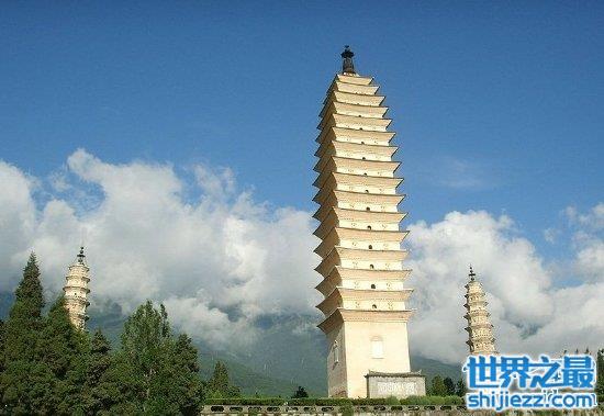 当中的大理崇圣寺三塔,距离下关14千米,位于大理以北1.5千米苍山应乐峰下,背靠苍山,面临洱海,三塔由一大二小三座佛塔组成,呈鼎立之态,远远望去,雄浑壮丽,是苍洱胜景之一。崇圣寺三塔的基座为方形,四周有石栏,栏的四角柱头雕有石狮,其东面正中有块石照壁,-“永镇山川”四个大字,颇有气魄。