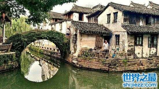 江南水乡六大古镇周庄,是中国第一水乡,地处苏州昆山市。周庄镇旧名远扬,周庄在春秋时期直到汉代都有“摇城”一名,传说吴王少子摇和汉越播君封在这个地方呆过。西晋文学家张翰,唐代诗人刘禹锡、陆龟蒙等人都曾经在这里居住过。周庄镇一半以上的建筑都是明清时代的,只有0.47平方公里的现代建筑。古镇有近百座古典的宅院和60多个砖雕门楼,古镇古风依旧,还有14座风格迥异的古桥。