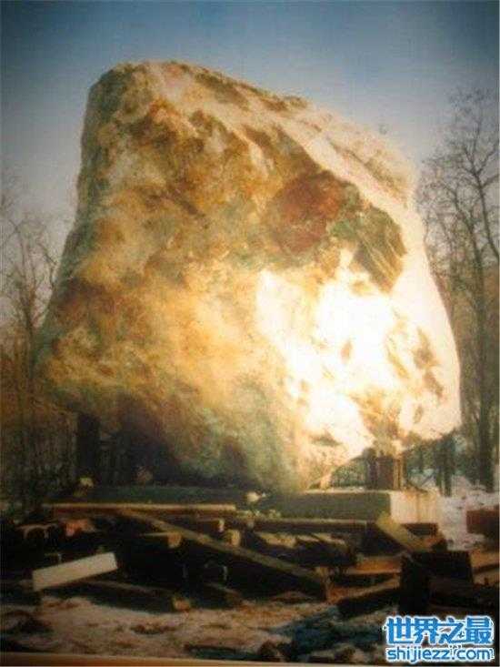 这块石头的外形非常的好看,可以说像彩虹似的,有绿色,黄色,白色,黑色,蓝色等,可以说是上下五千年以来非常难得一见的自然形成的石头。高达到8米,宽要达到7米总重量大概为260吨左右。可以算得上非常大的一块石头了,直到现在它仍然保持着吉尼斯世界纪录。