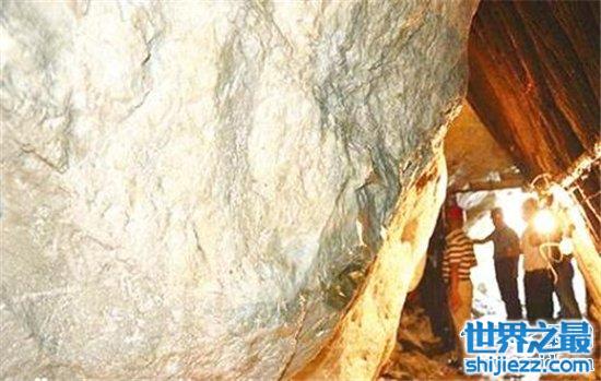 在探寻的过程中是非常艰难的,走进这个小镇还要再走很长的一段距离,我们才能到达当时开采这块玉石的地方。这块玉石开采以后,在这块附近又发现了很多的矿产资源,我们首先要做矿井,坐电梯就要做到100多米的地下深处。走到山包前我们才发现这简直就是一个玉球,因为它实在是太大了。