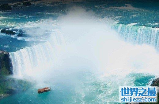 如果要论水流量的话,那世界上水流量最大的瀑布一定是尼亚加拉大瀑布。该瀑布位于加拿大安大和美国纽约州的尼亚加拉河上,平均流量为5720m3/s,碧绿的大瀑布飞流直下,宛如人间仙境,每逢节假日,世界各地的游客都慕名而来,到此度蜜月,走钢索横越瀑布或坐木桶漂游瀑布。