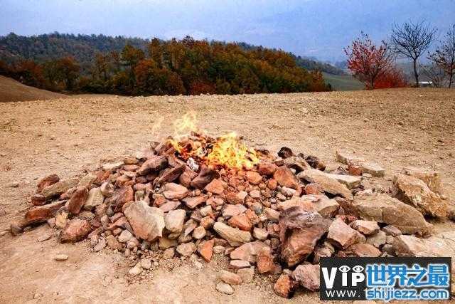 值得一提的是,这座小火山喷发出来的火焰并没有毒气,因此在这里烧烤的人们并不怕烧烤的时候中毒。小火山的火焰威力也不是非常的大,可以说和我们国内的篝火晚会之类的火焰比起它还算是小的,这也是人怕它爆发。所以当地的居民甚至还拿来了烧烤的工具,在上面烧烤,冬天还有人来这里取暖。