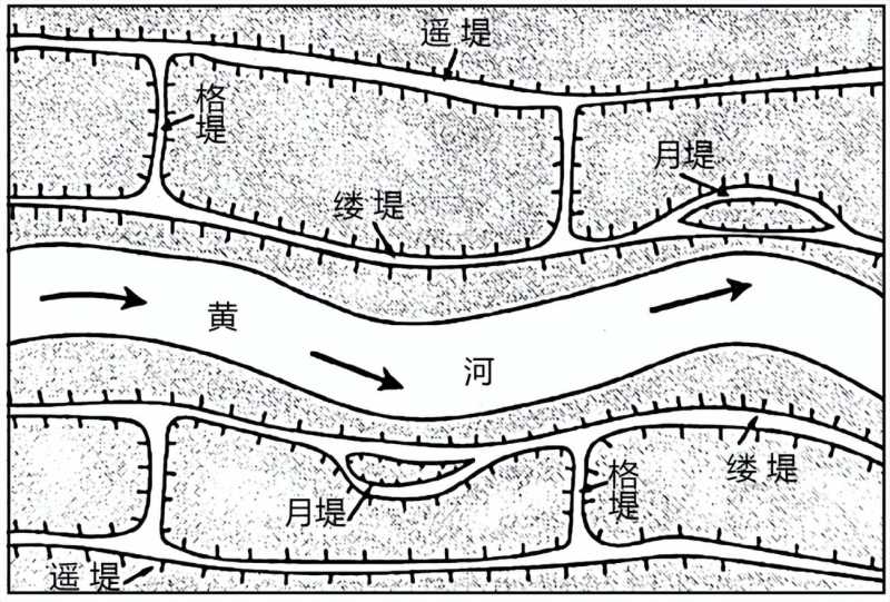 (2022·河北衡水中学模拟预测)人们对黄河的治理历经千年,清朝《河防述言》记载了一种“筑堤束水、以水攻沙”的治河方略,即沿着原有河床两侧,内筑多重堤防(如下图),“蓄清刷黄”取得了一定的成效。据此完成下面小题。