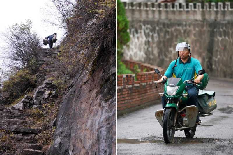 那是2010年春天,我跟随王收秋去大山深处村里送邮件,从早上八点走到晚上八点,整整12个小时。王收秋的衣服被汗水浸湿,头上冒着热气。
