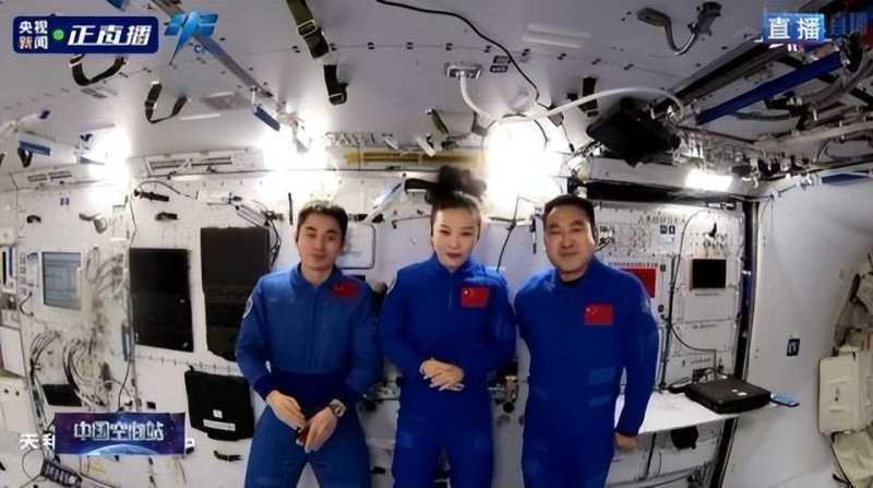 2021年12月9日,“天宫课堂”第一课正式开讲,本次太空授课采取“天地互动”方式进行。图为神舟十三号乘组航天员直播场景。据此完成下面小题。