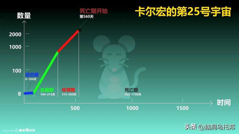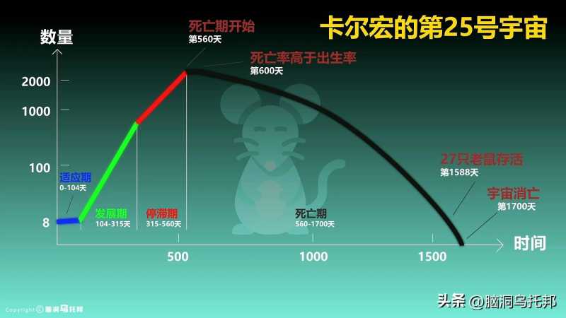 第600天时,死亡率彻底超过了出生率,此后老鼠数量开始出现断崖式的下跌。