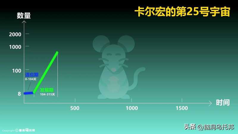 老鼠种群迅速扩大,从8只到16只32只,几乎每55天老鼠数量就能翻一倍。