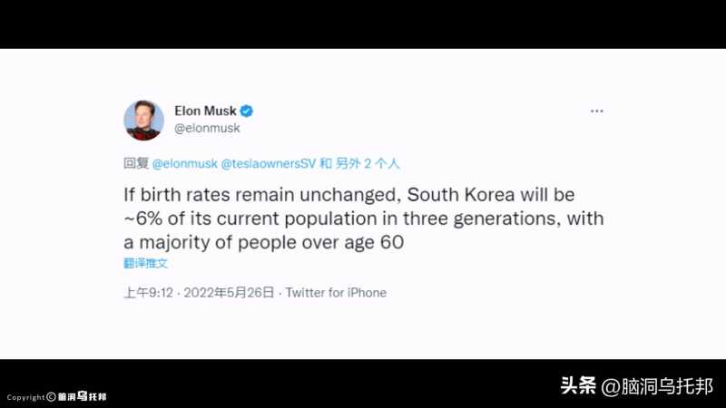 Musk说,如果韩国保持现有的低生育率,未来3代人之内,人口将锐减6%。