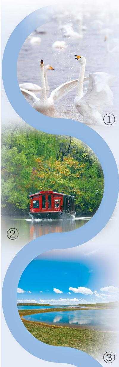 图①:大批天鹅到河南省三门峡市黄河湿地栖息越冬。 新华社记者 郝 源摄 图②:浙江省杭州市西溪国家湿地公园。 新华社记者 黄宗治摄 图③:位于青海省果洛藏族自治州玛多县的扎陵湖湿地。 赵金德摄 制图:潘旭涛