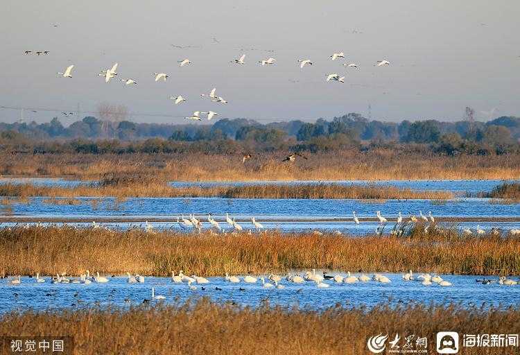 随着越来越多的候鸟迁徙至此,黄河三角洲迎来最热闹的时节。