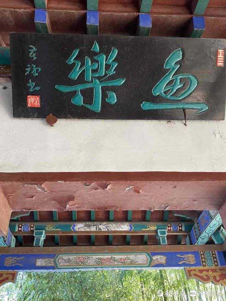 紫红色的溪水亭上,题写着绿色的“鱼乐”二字,仔细凝望水中,但见几条锦鲤正轻快地畅游。想这些鱼儿,一定也悟透了天机,从这幽深的古院,游向寻常水陌,游向普通人家。不由得想到李攀龙、殷士儋,他们不也是游出樊笼奔向自由天地的鱼儿吗?